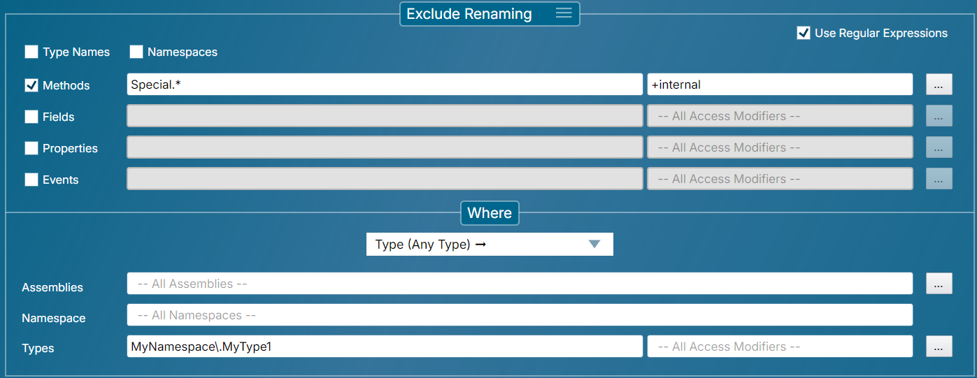 Example 6: Exclude Renaming for Internal Classes Matching "Special" Under Namespaces Starting with "My"