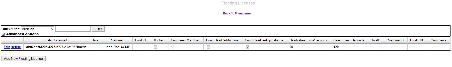 Here you can add, edit or delete the floating licenses for your users. The relevant settings are: