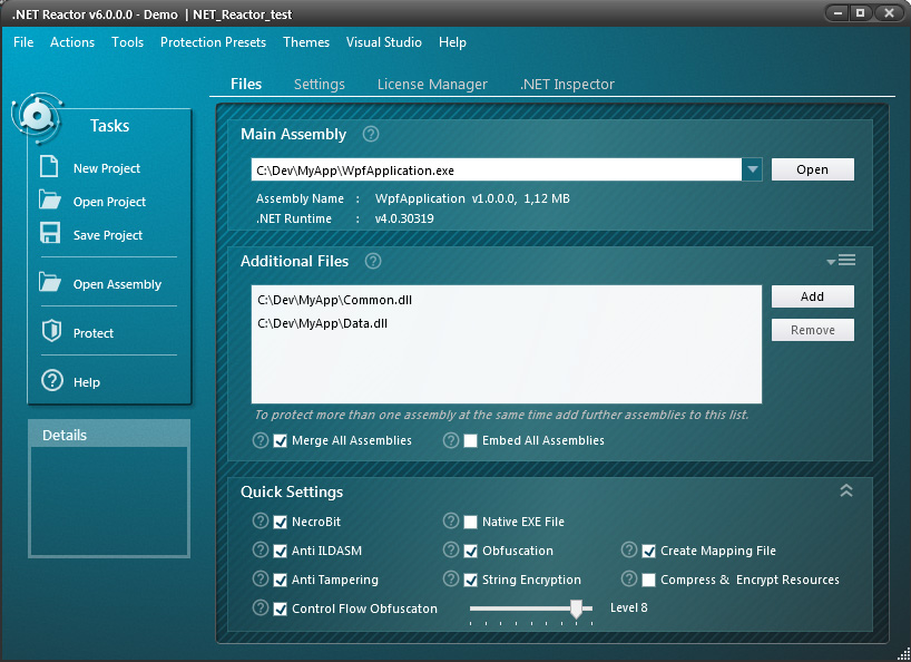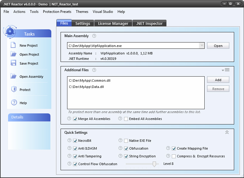 Here are some screenshots of .NET Reactor. Please click on the image to open a new window with a full-size image.